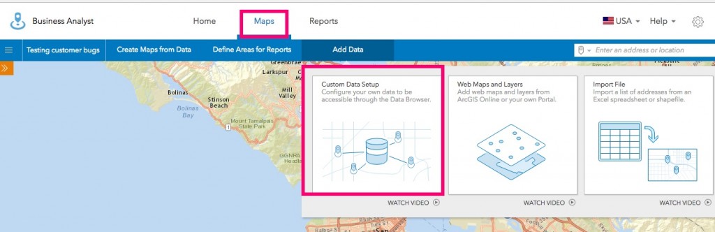 In the Maps tab, use Add Data > Custom Data Setup to start this workflow to import your data