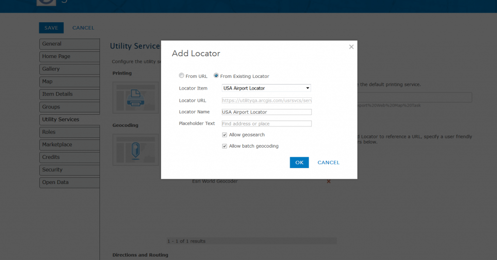 Once it is shared, have your administrator go to the Organization tab, and select Edit Settings, and under the Utility Services menu. The admin can add the USA Airport Locator view that you’ve created.