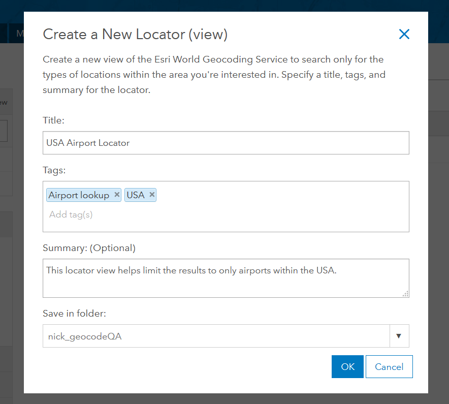 Prior to releasing the Locator Views capability, users might get false-positive (unreliable) results or incorrect candidates that weren’t exactly matching to their category of interest (e.g. Airports only). On the other hand, some users required geocoding only at the highest location accuracy (e.g. Address level) and didn’t want results at the postal or city level. The Locator Views capability that we recently released as part of ArcGIS Online this September aims to solve these challenges by limiting the search to the Point of Interest category or precision in the geographic extent that the user requires. This helps reduce incorrect results and focuses the search on the area, POI category, and precision of interest to deliver reliable results. Let us walk you through that in 5 easy steps on how this works through a case scenario.