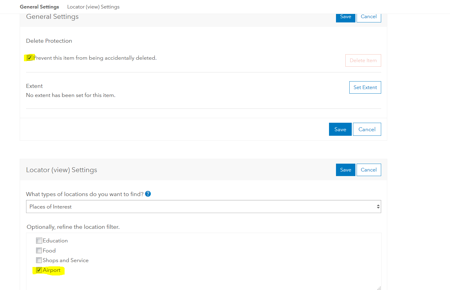 Configure your Locator View to search for only specific types of locations within the area you’re interested in using the settings page for the Locator View item you just created.