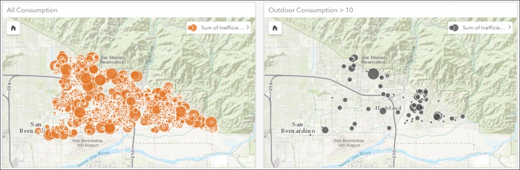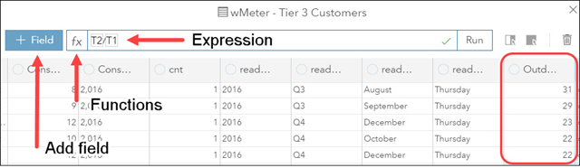 The Action Button has more than just spatial analysis tools. There are also tools that help you generate new data to work on. For example, let’s say you needed to find all the customers who use ten times or more water outside their homes than inside. Insights can help you figure out how outdoor and indoor water use are related by calculating a ratio on the fly.