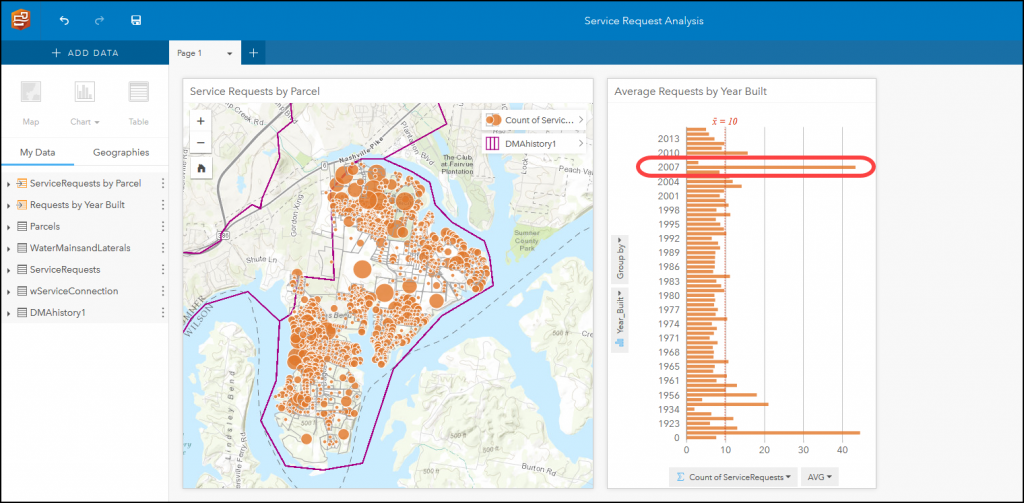 Insights for ArcGIS is a new web-based application that helps you integrate spatial intelligence with your organization’s data. Whether it is looking at adoption of rebate programs or analyzing your main breaks, Insights allows you to answer questions quickly and present those answers in a clear and concise manner. In this the second of a three-part blog, we will delve into the analysis capabilities of Insights. If you haven’t read our first blog in the series, you can find that here.