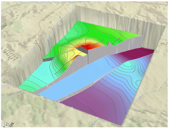 As an example, we’ll use the same case study described in Creating Faulted Geologic Surfaces with ArcGIS by Mike Price in the ArcUser Summer 2014 issue. In this article, the Spline with Barriers tool (the original Java version) is used.