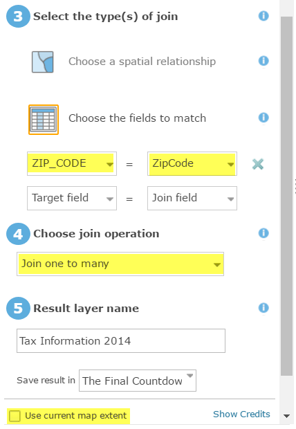 The dataset needs to be formatted so that there is one ZIP Code per field and only one field per column. To do this, I created a formatted CSV file that contains with some selected variables about refunds and tax creditsper ZIP Code. I then used the Join Features< tool, which was introduced in the ArcGIS Online December 2016 update, to create a new polygon ZIP Code dataset from the CSV. Below are the steps I used and some best practice tips for creating polygon ZIP Code data from a CSV.
