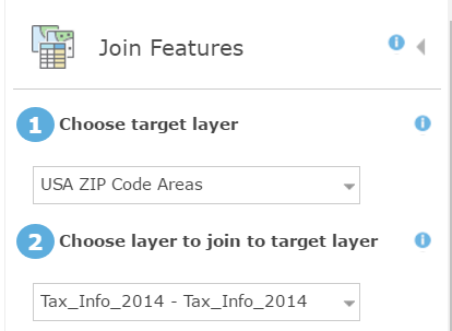 - Open the Join Features tool again and choose the filtered ZIP Code Area layer as the target layer and the table published from the CSV as the join layer.