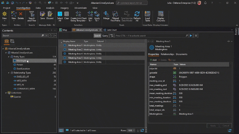 As observations are made, and persons of interest are identified, those observations can be added to the knowledge graph for more foundational understanding of this organization of interest. Prior to 11.2, knowledge graphs could only be utilized by analysts in the desktop software but have now been brought to the web and easily viewed in the brand-new Knowledge Studio web application.