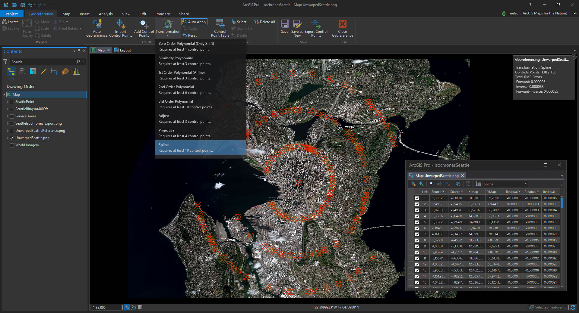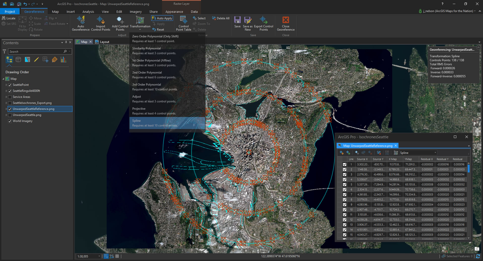 - Save the control point table and apply them to the image of Seattle without baked-in service areas. And save it as a new, time-warped image!