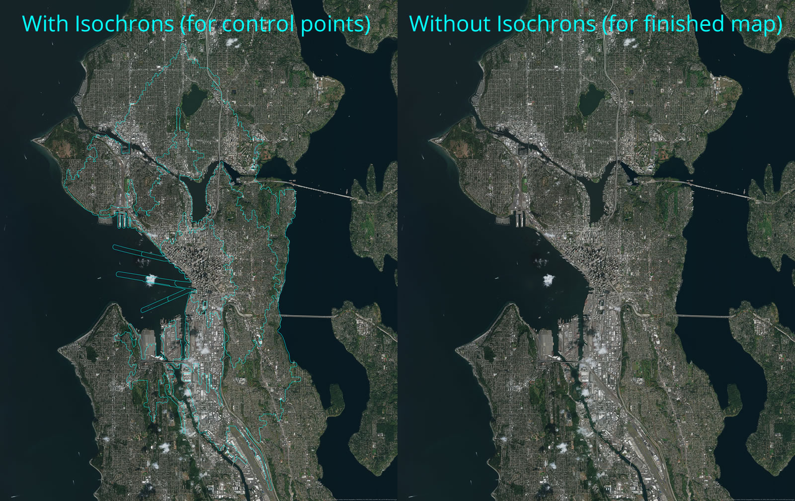 - Export 2 mega-huge images of the Seattle area (one with the service areas baked-in and one without).