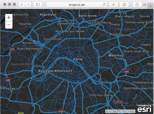 Click the image below to view a sample of a world street map vector tile layer with a predefined “night” style applied to the layer.