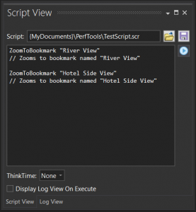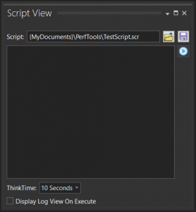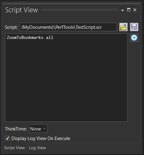 - Where are the performance results for this navigation operation? You can either check the “Display Log View on Execute” option on the Script View pane before executing, or you’ll need to select the “Log View” pane in the Views group of the PerfTools ribbon. This will open the following window: