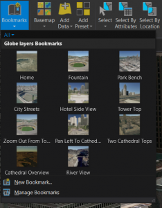 - For the purposes of this demo, you’ll need some spatial bookmarks saved for your map or globe view. We’ll use the zoom to bookmarks scripting capabilities within PerfTools to return performance measures for navigating between the various bookmarks.