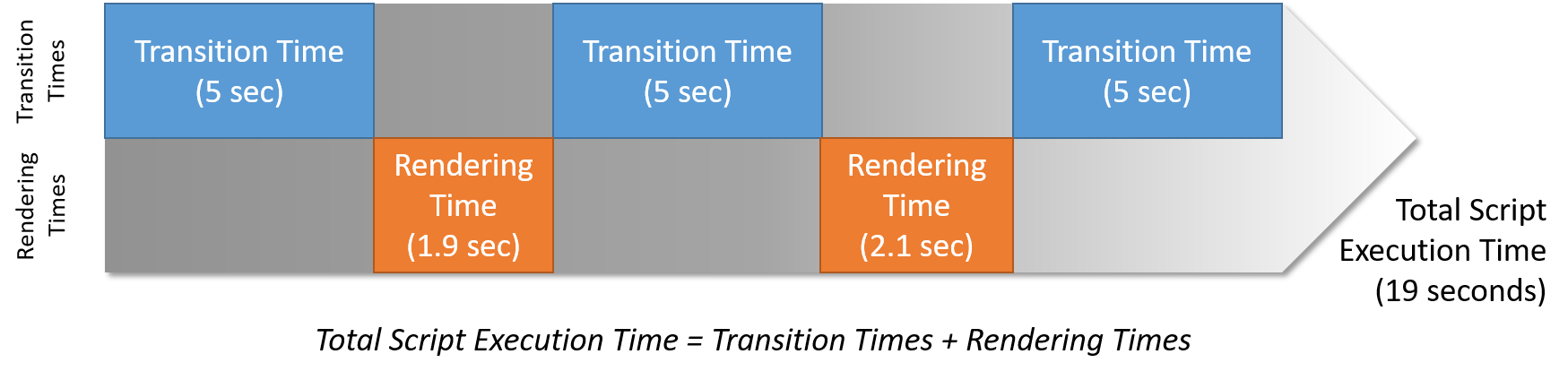 So what affects these performance results? In the log view and log file, the script execution time is affected by both the navigation (or “transition” times) and rendering times: