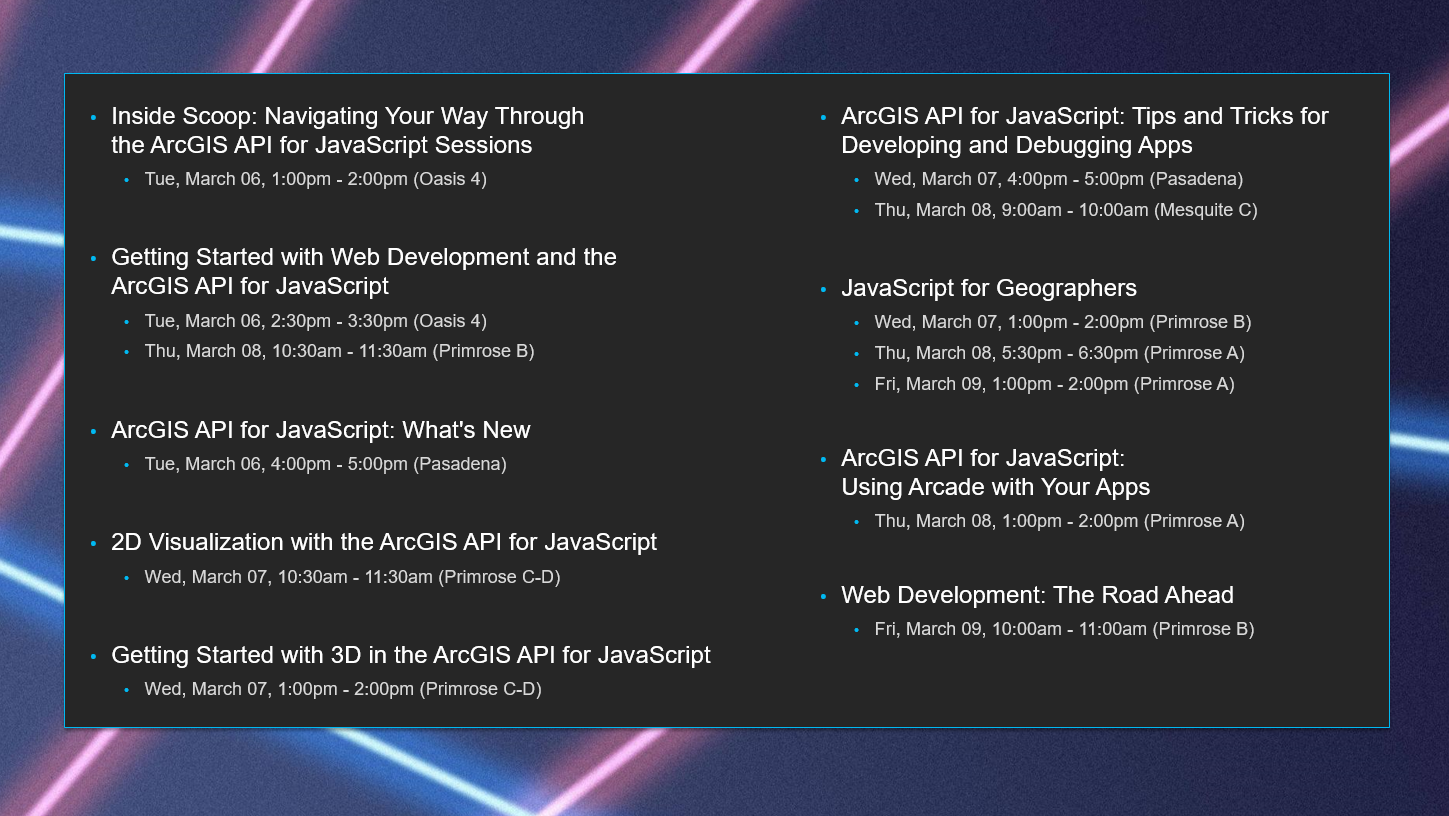 Inside Scoop: Navigating Your Way Through the ArcGIS API for JavaScript Sessions