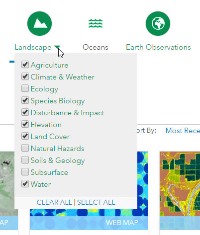 The redesign includes new search tools that make it easy to find and browse content you are interested in. You can filter based on content type (e.g., maps, layers, scenes, apps, tools) and by date of contribution. You can also filter based on themes, and refine your theme search.