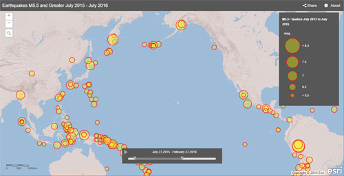 Time Aware is a configurable app template that enables you to visualize time enabled layers in a web map using a time slider.