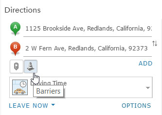 Barriers are added interactively, and can be used to represent temporary route restrictions, such as street closures during an events like parades, marches, and marathons. Future releases will include the ability to add barriers from other layers, edit barriers, and more.