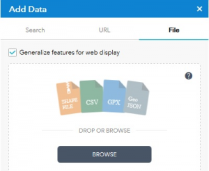 - Add Data widget supports adding layers from groups and local files: shapefile, CSV, GPX, and GeoJSON.
