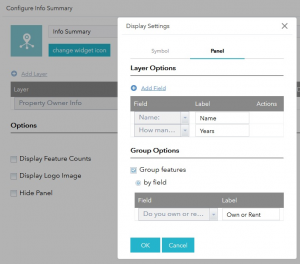 - Info Summary widget, you can group features based on renderer and it has been improved to better support the many different Web AppBuilder themes.