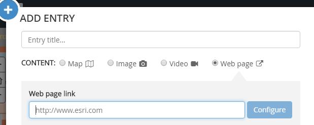 - I followed the instructions to add each of my ‘themed’ apps, adding the name of the theme to the title. Note that web apps are not accessible under the ‘Add Map’ option. Instead I used the ‘Web Page’ option and entered the URL for the app.