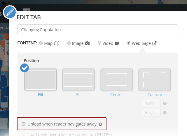 When loading the maps or apps, and assuming that your build is working smoothly, you can assist the browsing process by making sure that the ‘Unload when reader navigates away’ command is switched off:
