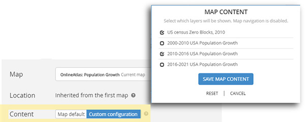 I created and inserted a graphic to fill the background , then used the sidebar to create the introduction. I could have removed the sidebar and added the introduction within the graphic if I preferred. There is also the possibility of making the Introduction more interactive by inserting a third app here such as ‘Cascade’. However, test the final Atlas for performance-you may not want to overload or over-complicate it.