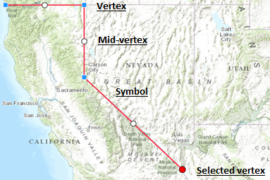 The following image shows the default symbology used by the edit tools of the Editor: