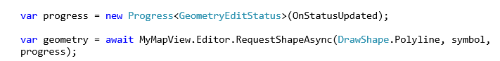 - Declare an instance of Progress<GeometryEditStatus>, which accepts an Action delegate that takes the same parameter type