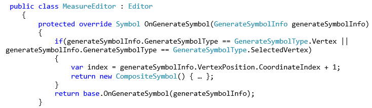 The final code example demonstrates sub-classing the Editor and overriding the OnGenerateSymbol method: