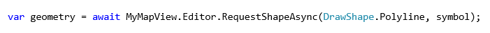 The following code puts the map in sketch mode and returns a polyline geometry upon completion of the asynchronous task.