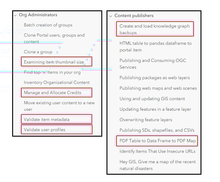 - New sample notebooks for GIS administration and content management workflows