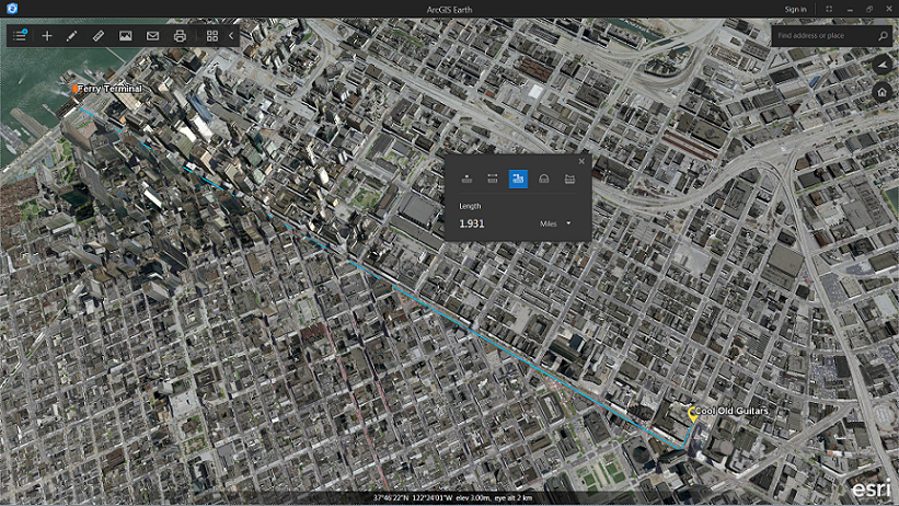 Measure, create placemarks and simple geometry, and more