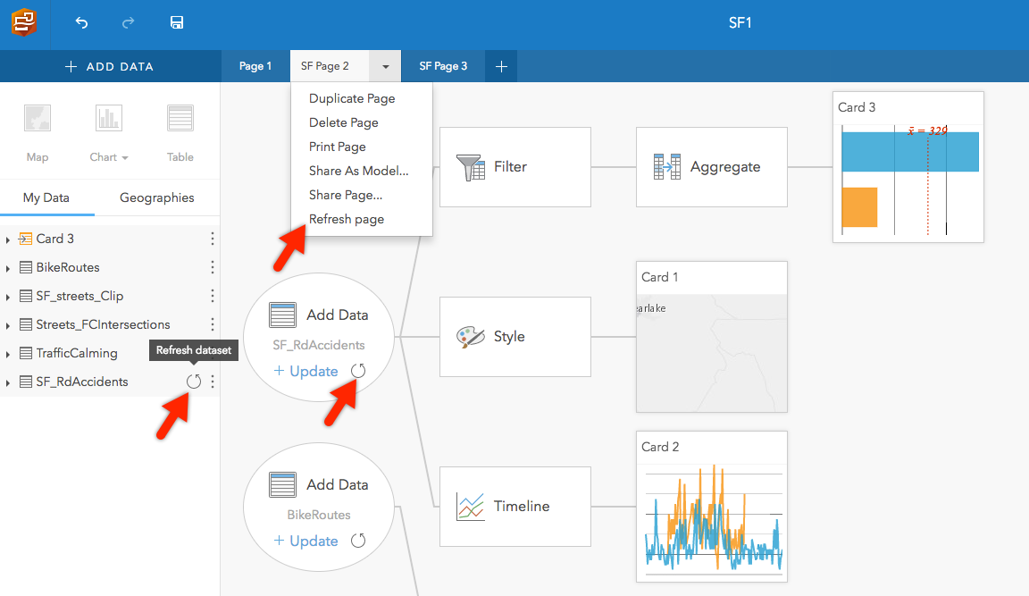 Refresh pages and datasets: