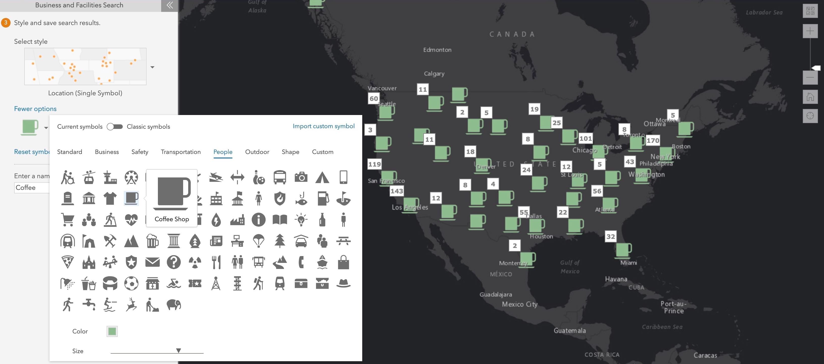 Hundreds of new map markers now available to symbolize locations the way you want. Start with vector graphics and color them to present locations with the best visualization.