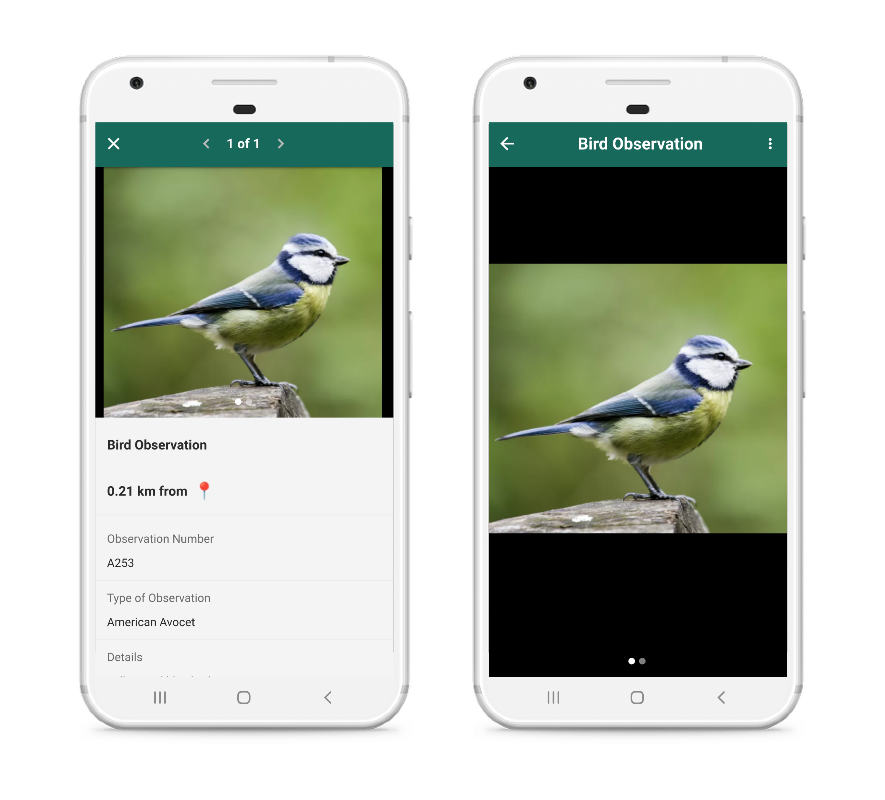 - Allow feature attachments within popup – When viewing the information popup for a feature, if the returned feature (query result) has attachments (images, text, pdf, etc) the popup will display the attachment directly in the popup. In the case of multiple attachments per query result, users can browse through attachments individually. To view a popup of the selected feature, tap on the “Details” button on the card. An example has been shown below:
