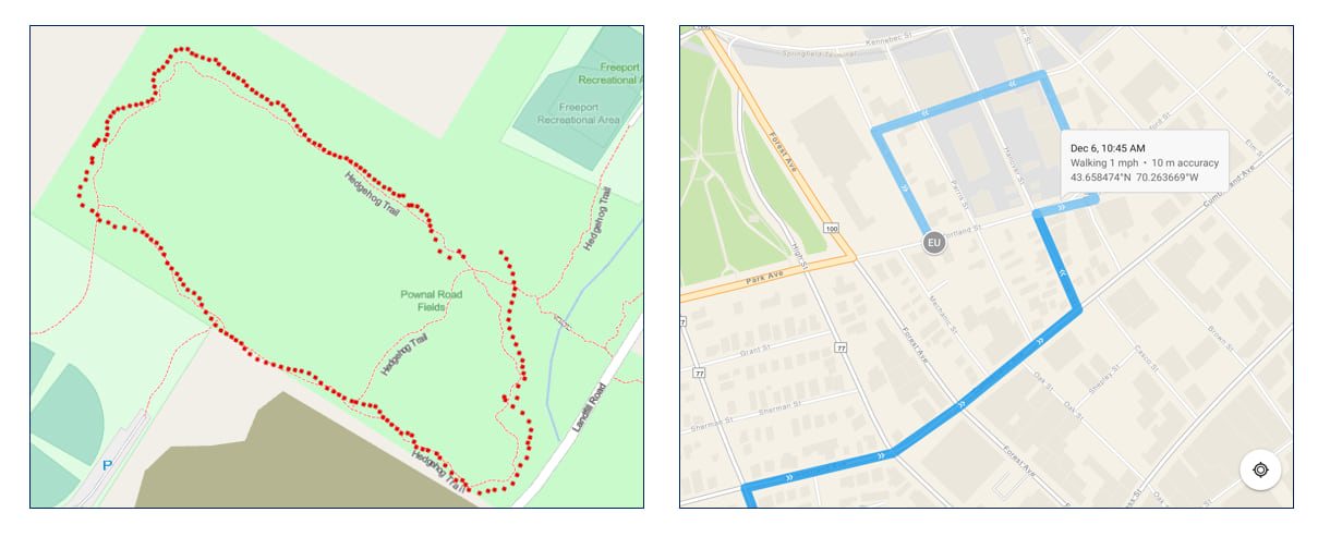 Location tracking data can be used and analyzed in several different ways, depending on the organization’s needs and business use cases. In many instances, last known location (LKL) data can be displayed in a situational awareness app to monitor personnel in the field showing their real-time locations. Location tracking history data can be displayed as lines (commonly called tracks), usually symbolized with chevrons to indicate direction of movement. Location tracking data can be used as inputs to perform spatial analysis such as: route deviation, dwell analysis, journey assessments, and proximity tracing.
