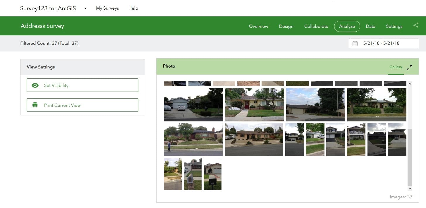 Photo Galleries in the Analyze report: Up until now, Image and Signature questions in your survey were not included in the Analyze report. Starting with this update, photo galleries will be used to display data submitted into Image and Signature questions.