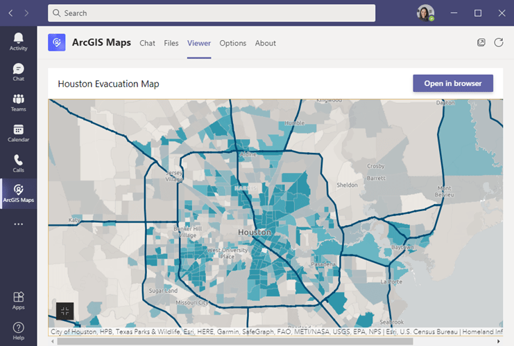 Use ArcGIS for Teams to find, view, and share ArcGIS content with colleagues in your Microsoft Teams chat conversations, meetings, and groups.