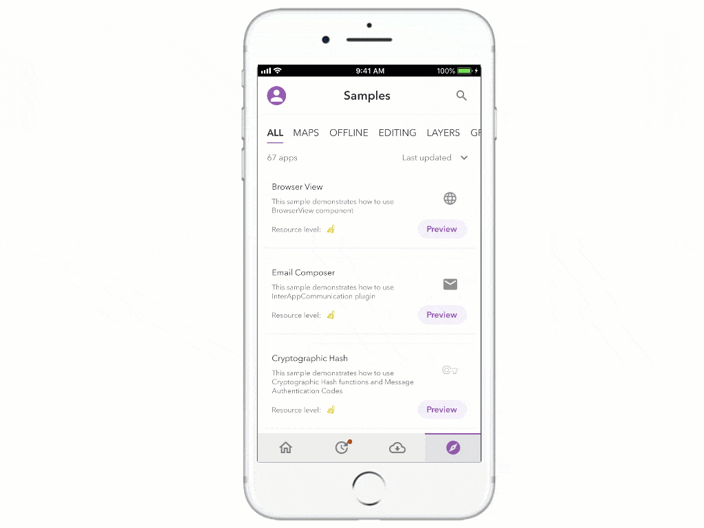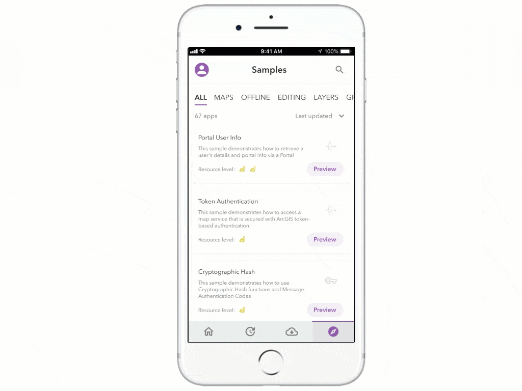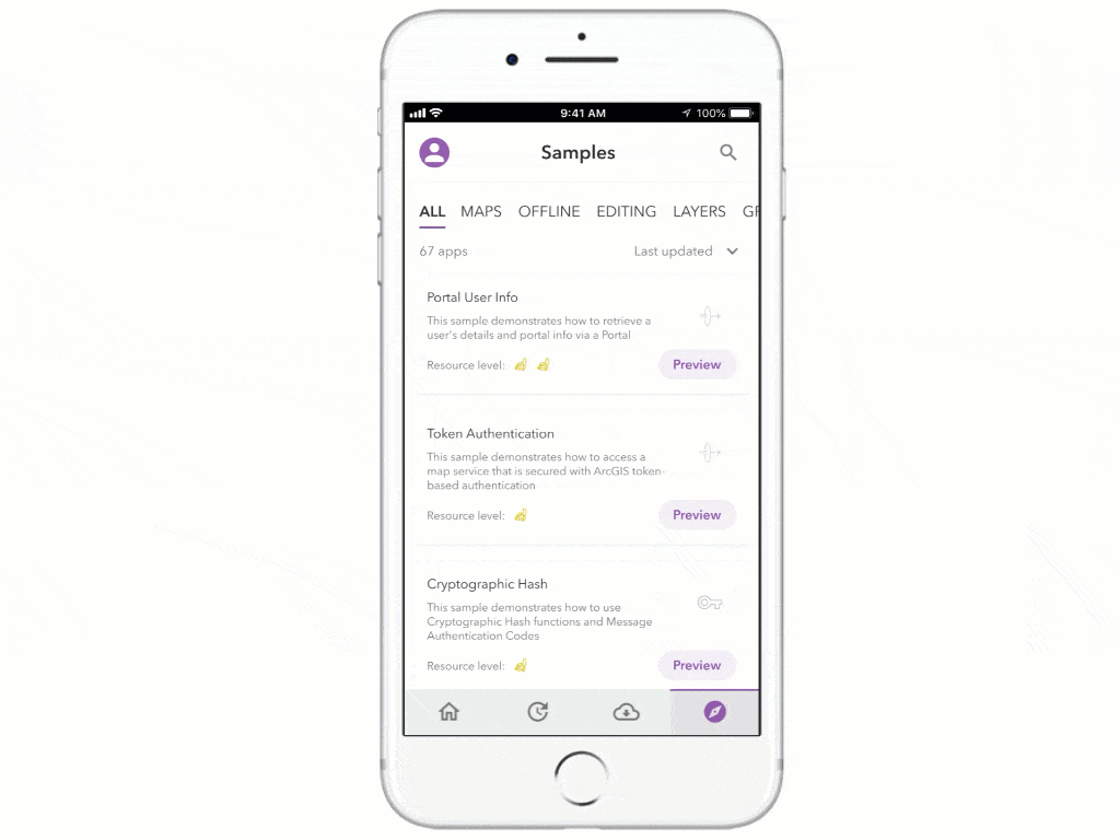 AppStudio Player 3.1 now includes a Samples page where you can download and explore more than 60 live ArcGIS Runtime and AppStudio AppFramework sample apps directly onto your mobile device. We also provide you the ability to search for samples based on their functionality.
