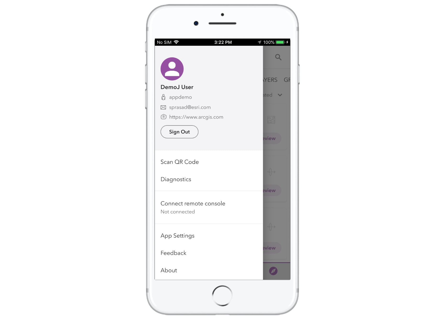 The new side menu design provides a clean and intuitive experience to access the Scan QR code function, the Diagnostics page, the Connect to Remote Console tool, App Settings, and the About page.