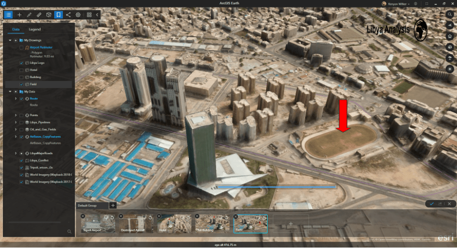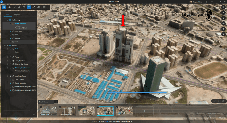Next, we will add in some arrows, to call out buildings of interest along a route in downtown Tripoli.