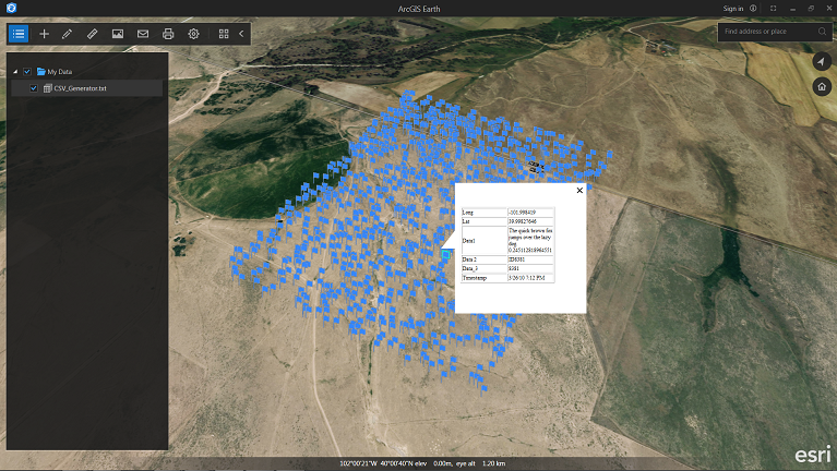 Users who generate simple lists of coordinate information can directly load coordinates by CSV or TXT file into Earth. Earth has a simple interface for selecting the coordinate columns and can even load projected coordinates if there is a corresponding worldfile for the CSV.
