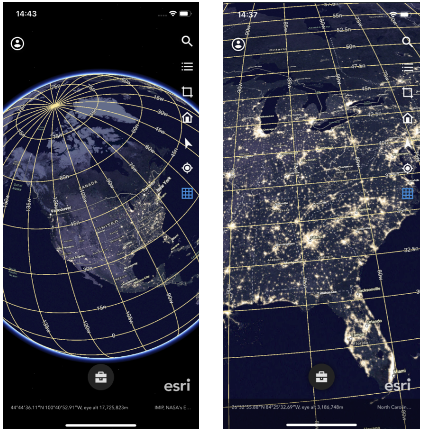 ArcGIS Earth now enables the display and customization of grids, providing a framework for visualizing and understanding spatial data. Users can easily visualize spatial reference systems or partition map frames by selecting from four supported grid types in scene properties. Grids ensures that 3D scenes are accurate, consistent, and suitable for the specific project needs. The supported grids include Geographic-Geographic coordinate system grid, UTM-Universal Transverse Mercator zones, MGRS-Military Grid Reference System, and USNG-United States National Grid.