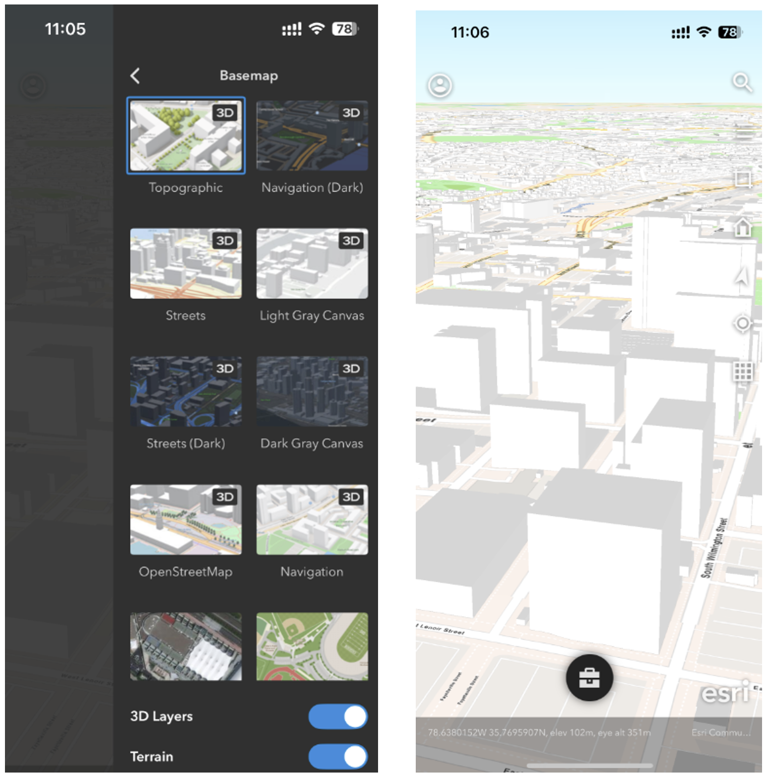 ArcGIS Earth now supports 3D basemaps on desktop and mobile, making it easier for our users to access immersive 3D content. This initial release of 3D basemaps will focus on 3D buildings, providing users with a detailed and realistic representation of urban environments. By leveraging high-quality data from OSM Daylight Distribution, ArcGIS Earth enhances its mapping capabilities to offer an unparalleled experience. Future updates will expand this support to include 3D trees and labels, further enriching the visual detail and utility of our maps.