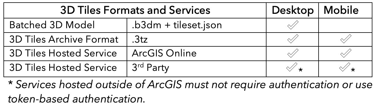 Here’s a summary of 3D Tiles support in ArcGIS Earth: