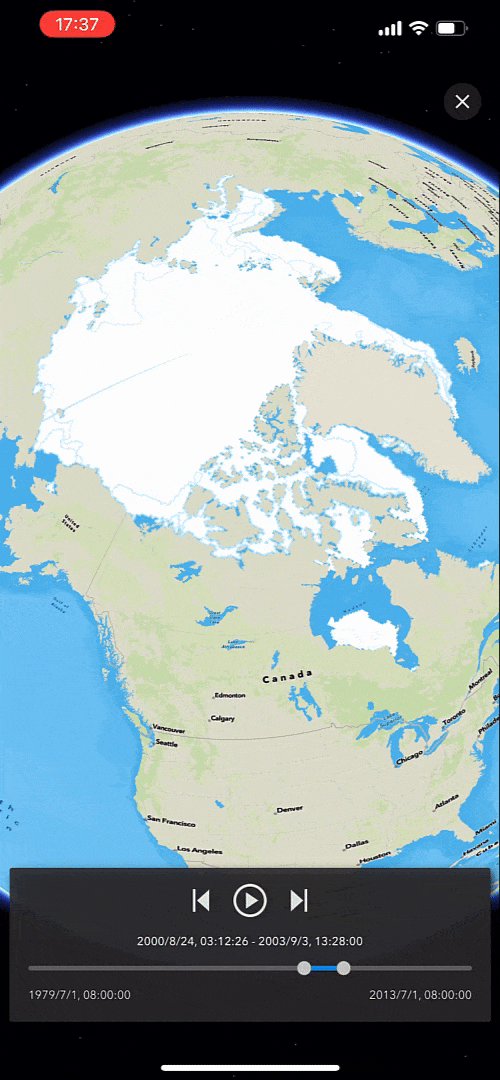 A brand new feature that is being added to ArcGIS Earth in the latest Mobile release is the ability to visualize the change in temporal data over a period of time. This feature includes control over the time animation.