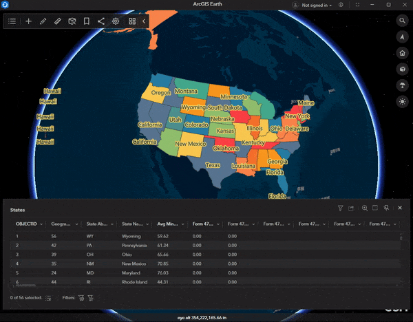 Filter is a key new feature we added to this release. You can define a single expression or a combination of expressions as a filter to determine a desired subset of features shown on the map. The filter panel can be accessed through the attribute table’s filter icon or layers’ right-click menu. By applying definition queries to the layers, you can filter out the data you don’t need and only have the desired data display on the globe.