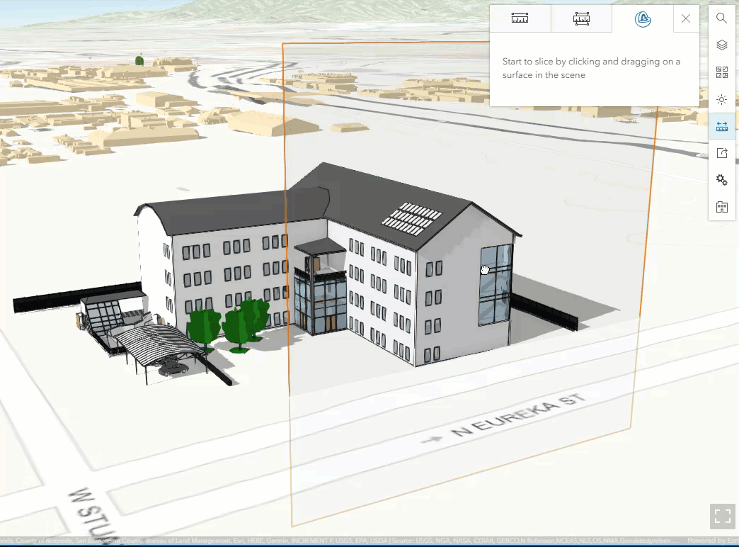 Before this release we had the measure area and length tools available for you to use in your scene. You can now use the new slice tool along with the measurement tools. The slice tool temporarily suppresses parts of your scene to expose hidden content. For example, you could have a complex digital model of a building that has a cold and hot water piping contained within it. When you view the exterior of the building you cannot see those pipes without adjusting the layers visibility that could be obstructing the view of the pipes. You can now use the slice widget to suppress the shell of building along with other layers to easily reveal the pipes within. You can read more about this new tool here.