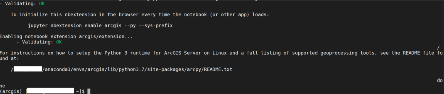 As noted, I am specifying python=3.7 in this environment as I plan to use the Python 3 runtime. Additionally, we will need to set environmental variable ARCGISHOME. As the name suggests, this will allow our Conda environment to recognize our ArcGIS Server installation path. Without setting this, we will not be able to properly download the arcgis-server-py3 package. To avoid any issues, let’s set it now: