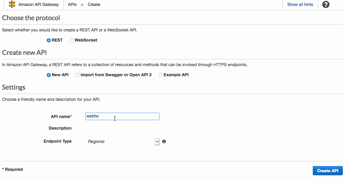 The entry point into a Lambda Function is called the Handler. A Python Handler is a module-level function with two arguments, event and context. When our handler function is invoked from our webhook, event will be the payload JSON, represented as a Python dictionary. We don’t use context, but it provides information from AWS Lambda about the execution environment. Since our Python function def handler(event, context): is specified in a main.py file, the Handler field should be filled in as “main.handler”.