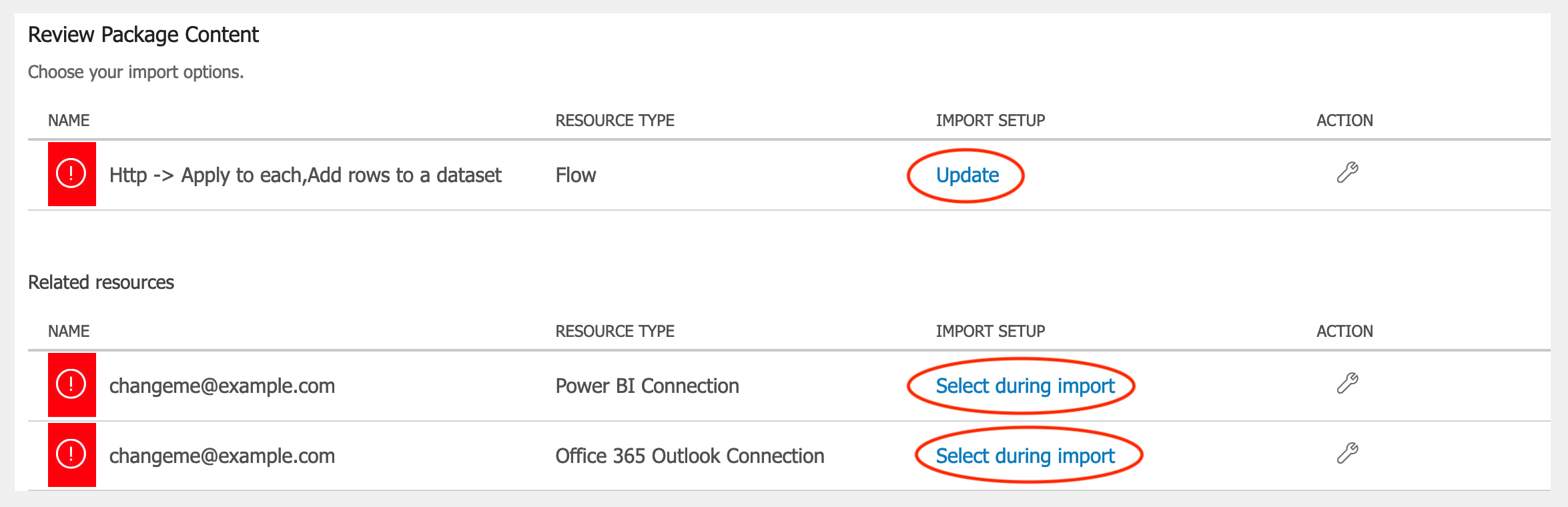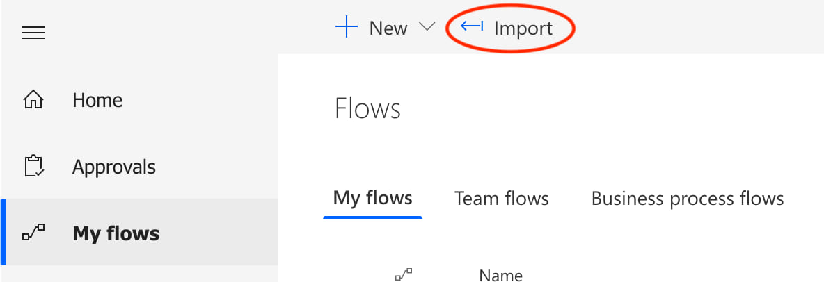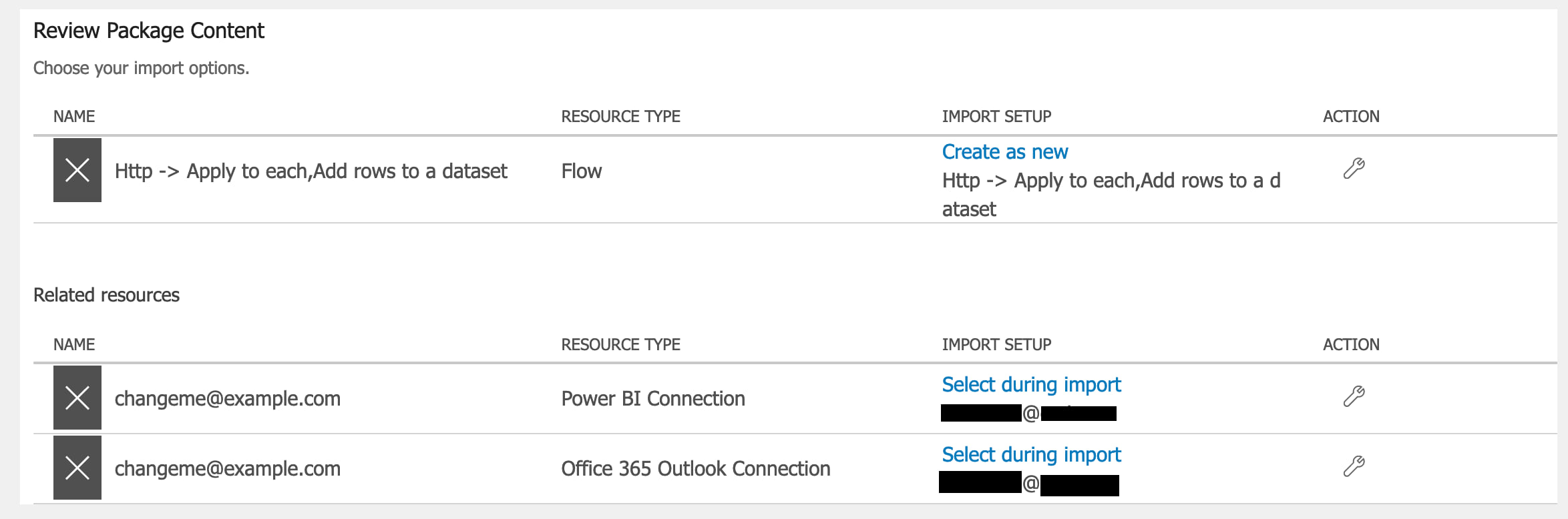 The first field should be set to “Create as new”, with the latter two being configured to your Power BI connection and Office365 connection. When we’re done, click Import to create our new flow.